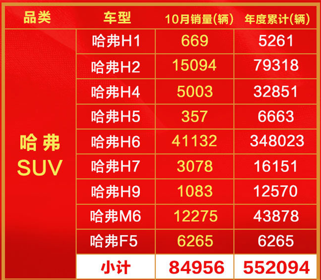 在SUV市场整体销售增速放缓的大环境下,哈弗凭借着过硬的产品实力、强大的品牌号召力以及优质客户服务等优势,哈弗品牌继9月在众人眼中上演了一出“王者归来”的戏码外,10月销量更上一层楼,售出8.5万辆的好成绩,环比暴增近40%。“国民神车”哈弗H6累计65个月夺得SUV市场冠军,销量傲视同级,不仅进一步巩固了哈弗在SUV市场上的领先地位,也是它深受用户喜爱的最佳见证。