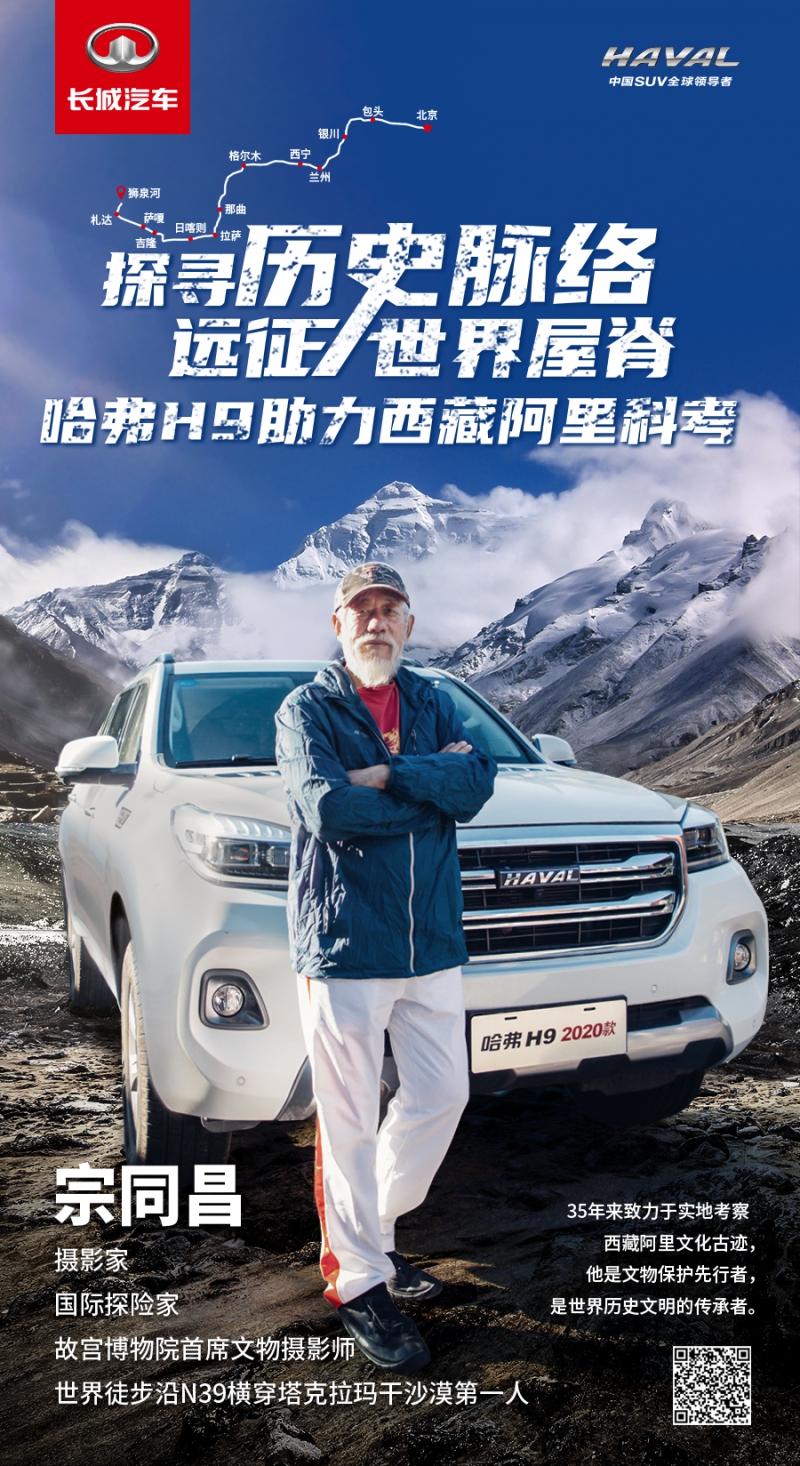 6月1日,国际探险家、摄影家,被誉为中国当代徐霞客的宗同昌宗老再次启程进藏,准备开展阿里科考之行。这是35年来宗老藏地实地科考之旅的又一次远征。只是这次,他选择驾驶自己的哈弗H9,从北京出发一路向西,横跨5省近5600公里进藏,穿越那曲、日喀则、萨嗄、札达、狮泉河等地,深入阿里腹地开展为期近1个月的实地科考。